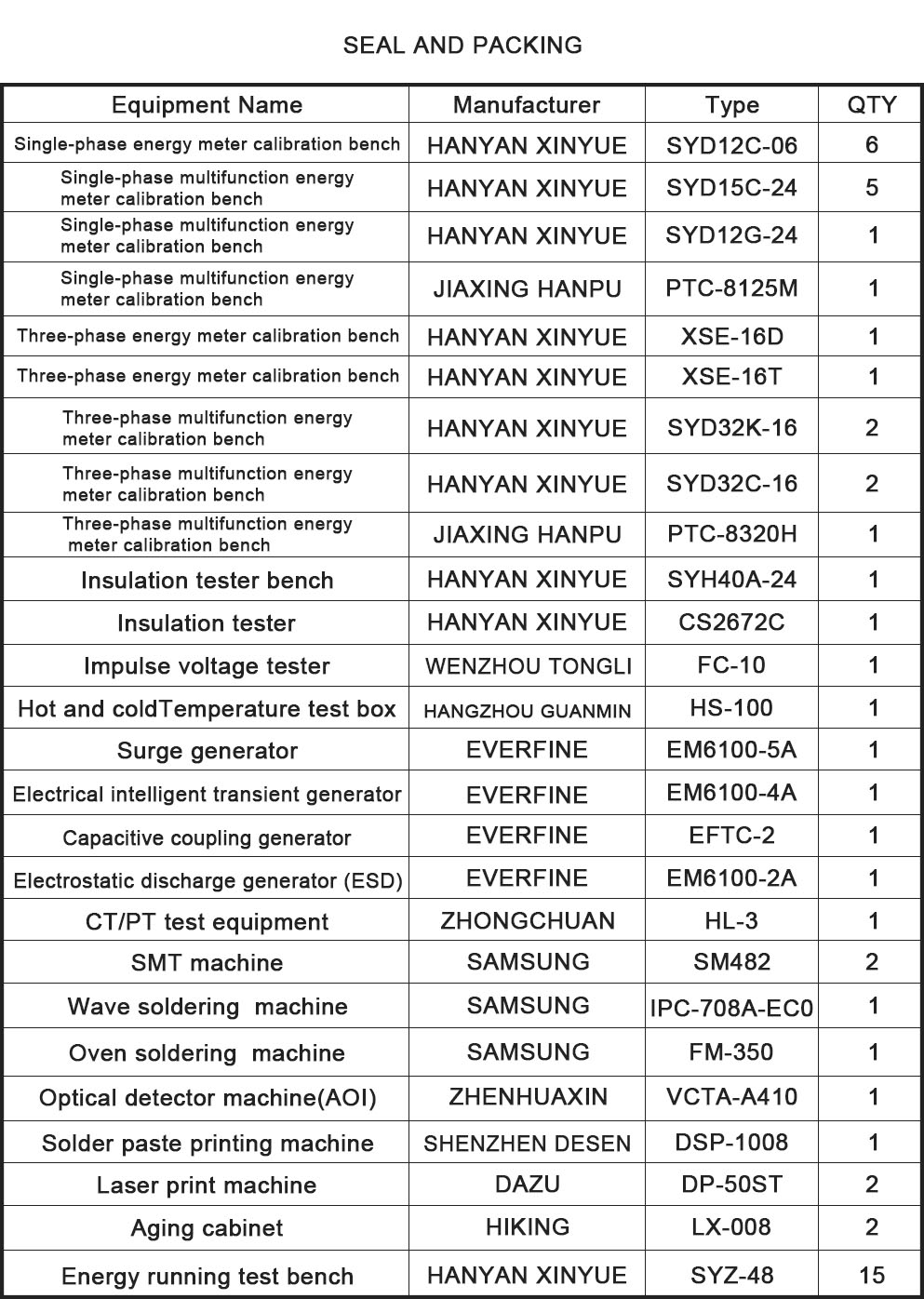 equipment list